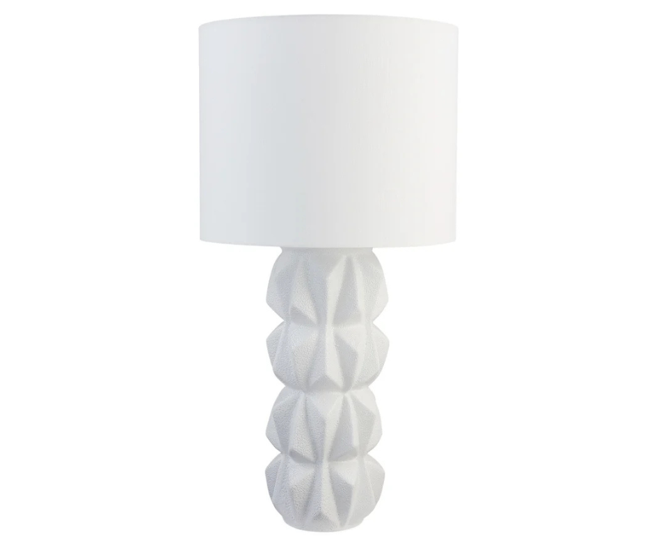 Taking cues from both origami and Brutalist architecture, our ceramic Accordion Table Lamp features edgy, undulating forms finished with a cratered lava glaze. Angular, textural, and topped with antique brass accents and a white linen shade. Add a warm glow to any surface, or style with our Accordion vases to create a shapely tablescape.
